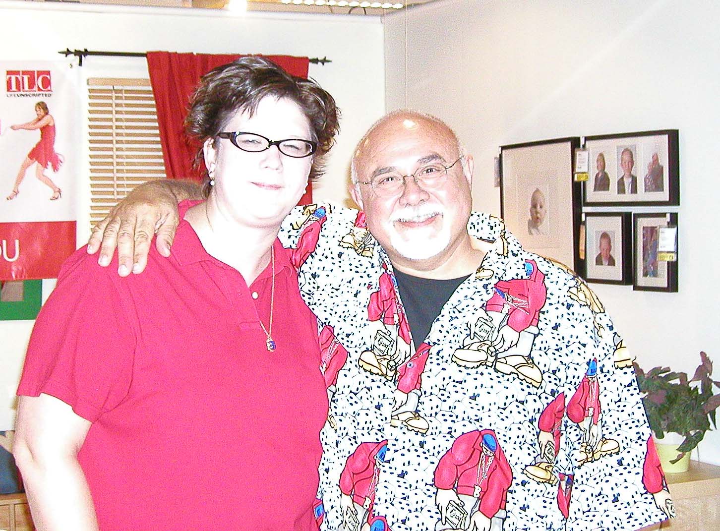 So anyway, we saw where Vern was going to be speaking. We grabbed a couple of the last few chairs available in the back row. We were near where he would be signing autographs later so I thought that I would have great access. It was still 1/2 hour before he came on stage and there was a woman waiting in line. Pshaw, how silly of her. What an insane fanatic. She's going to be in that line for an hour before Vern even sits down at that table. Well, more people started getting in that line and I started looking over every couple of seconds. Joy could sense the anticipation I had of meeting Vern and she told me I could get in line if I wanted. But, I blew it off and told her not to be silly. But now there were like 10 people in line. 20 minutes before Vern even got on stage. I couldn't take it any more, I got in line. I am the fanatic. Of course I wasn't wearing the signature shirt like the lady in front of me. Or, the homemade shirt the girl behind me was wearing, I didn't want to appear to be a freak or anything. Please. Joy remained seated to hear Vern speak, I was waiting in line, Trading Spaces book in hand, and there was no one to talk to. Thank goodness people in Texas are friendly. Robin was one of the ladies in line next to me (she wasn't donning any of the Trading Spaces freak stuff). We started talking, and before I realized we were talking about our favorite Vern episodes and laughing like schoolgirls with crushes while talking about the episode he took his shirt off in.